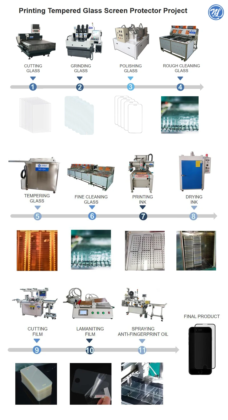 ND group provide not only the tempered glass screen protector production line with the complete set of equipment, and also the corresponding production technology.